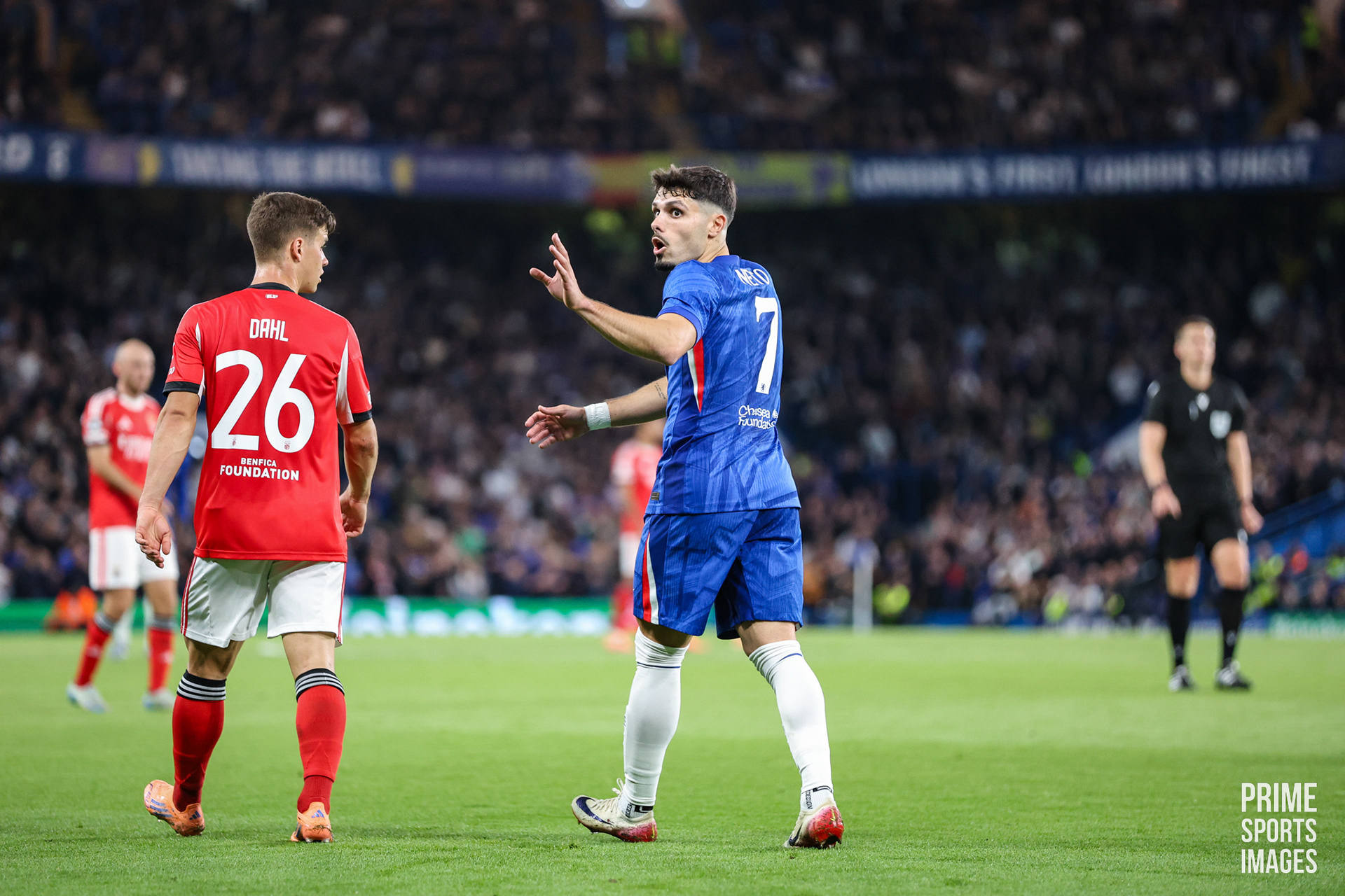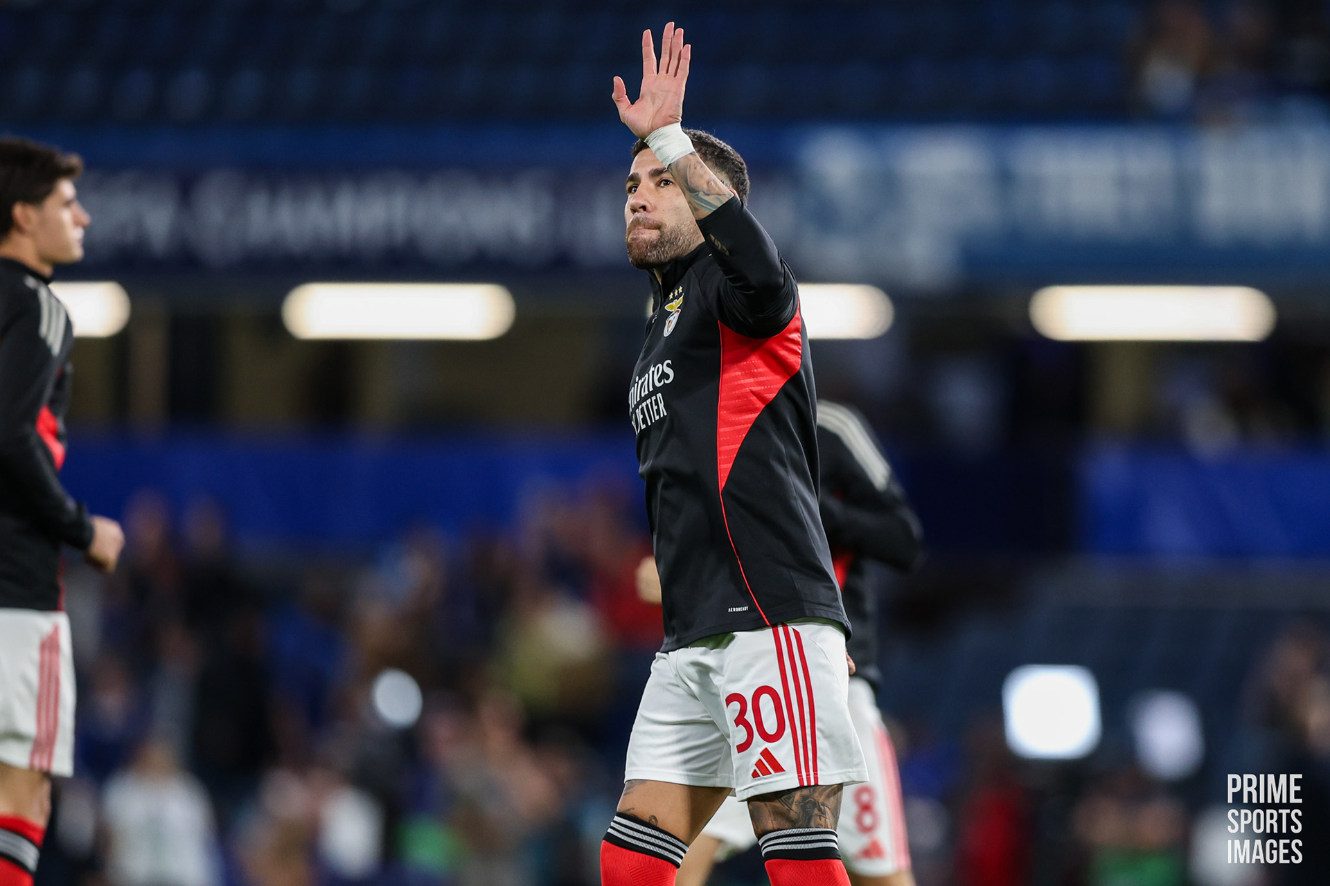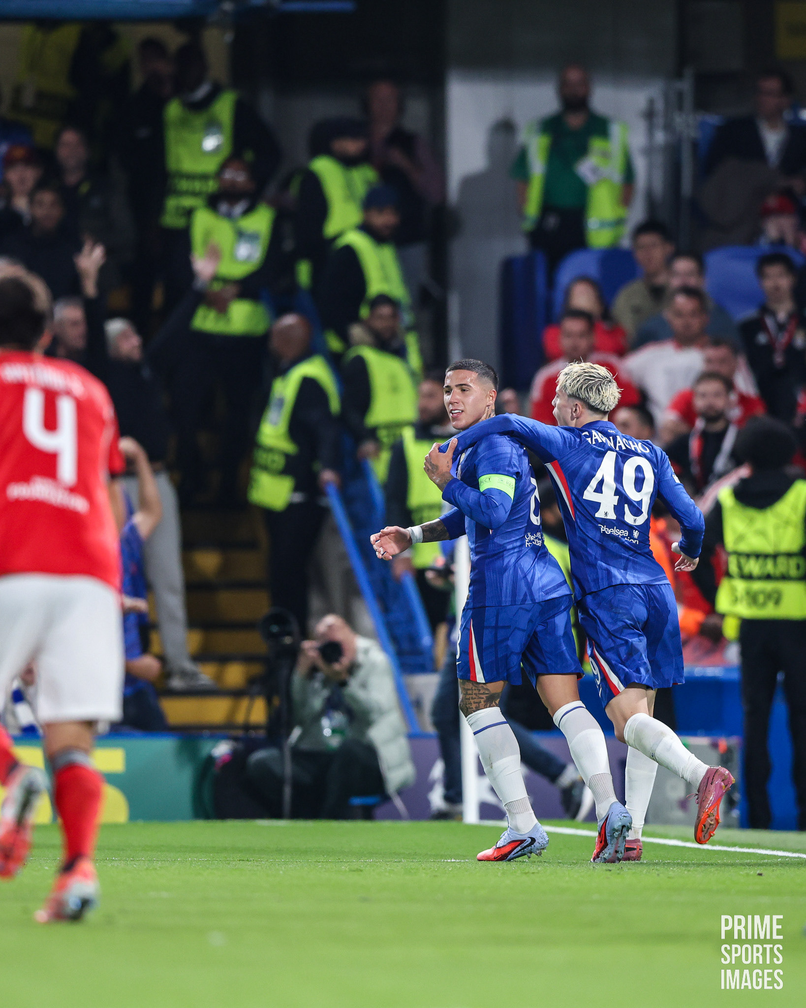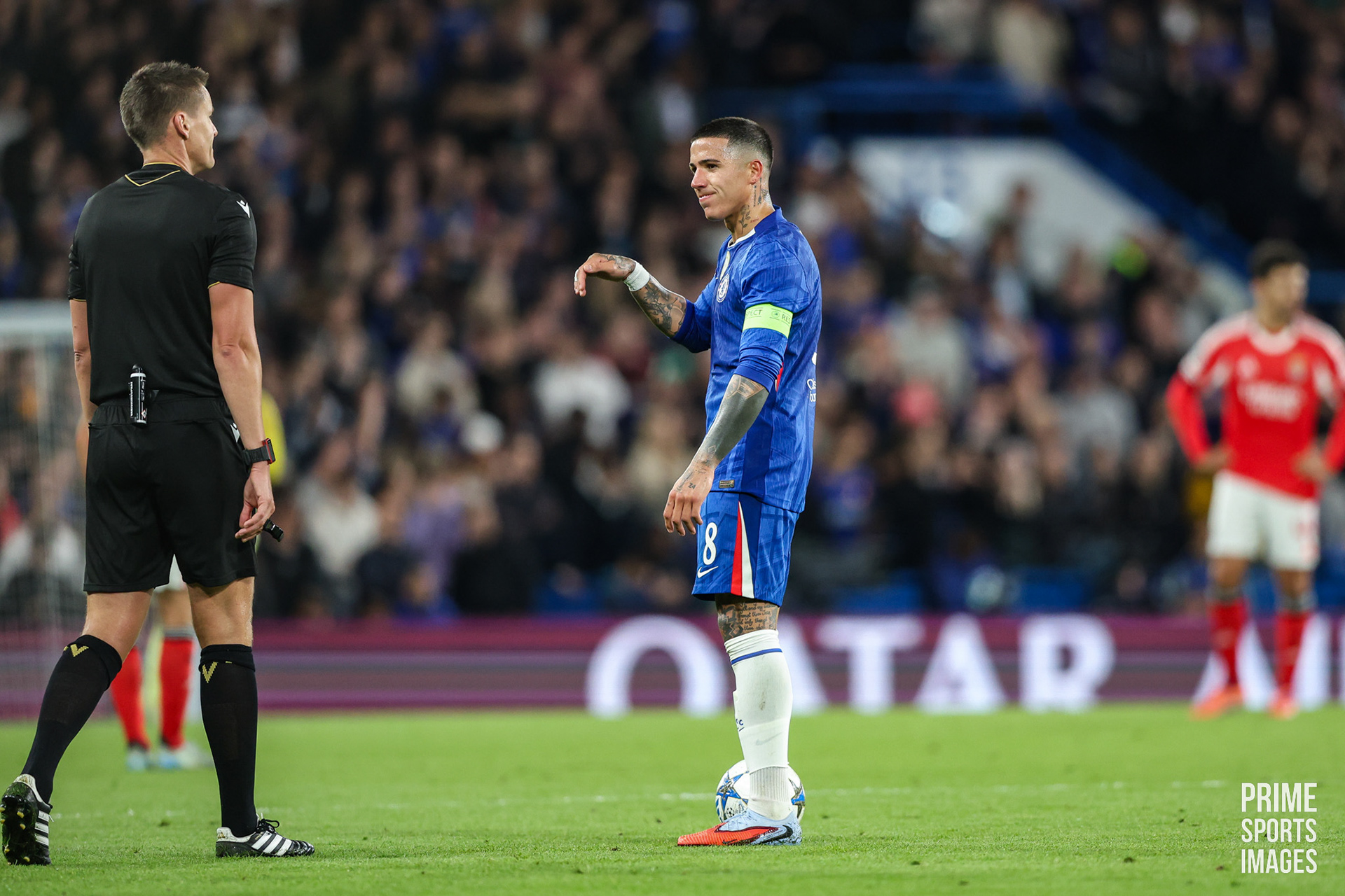 O JOGO CHEGOU A ESTAR INTERROMPIDO POR UNS MINUTOS, OS ADEPTOS VISITANTES ARREMESSARAM OBJETOS A ENZO FERNANDEZ ( EX-JOGADOR ENCARNADO ).