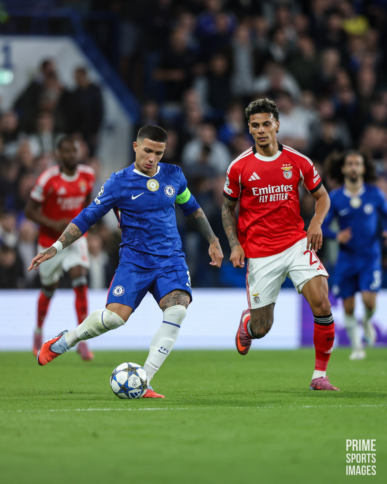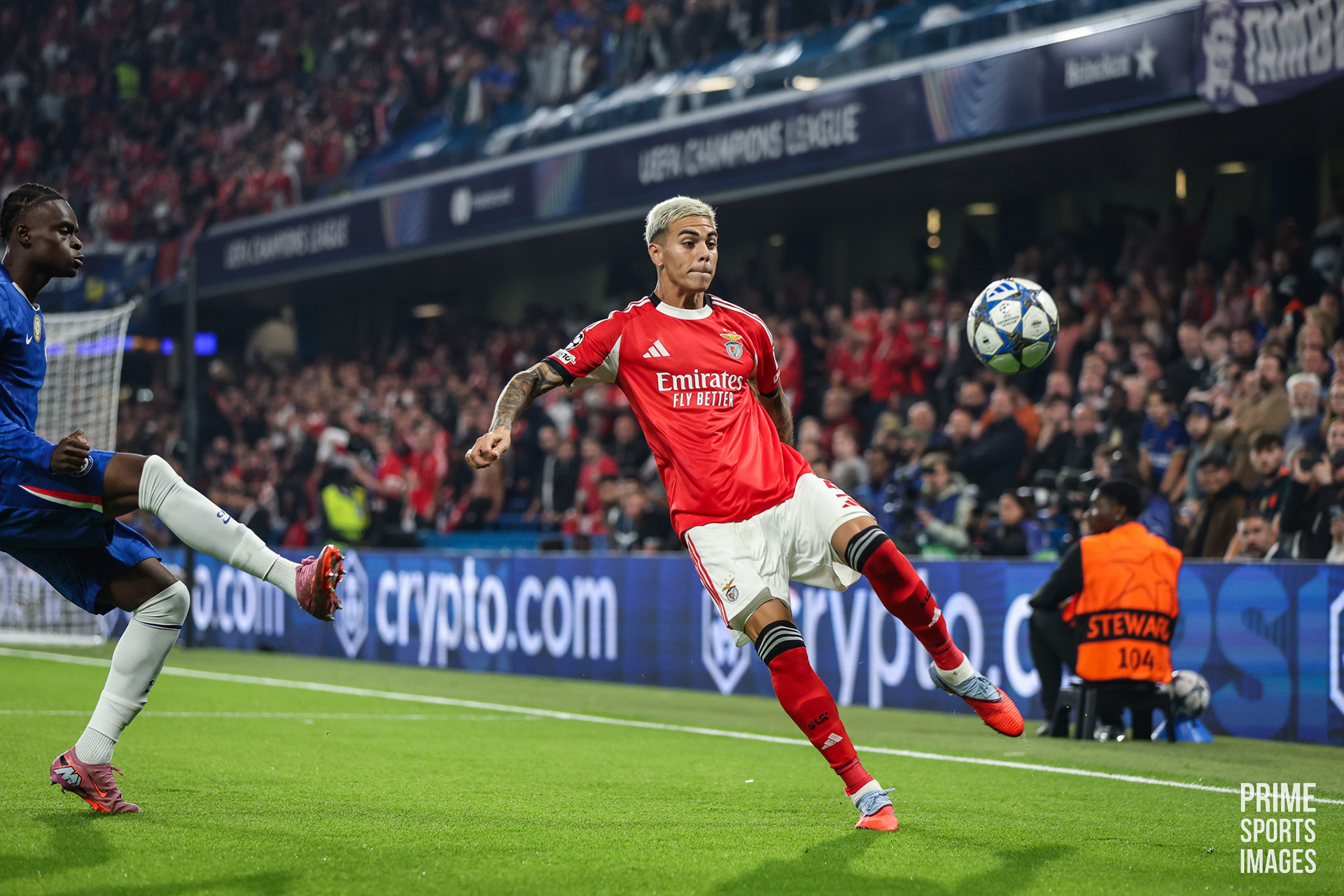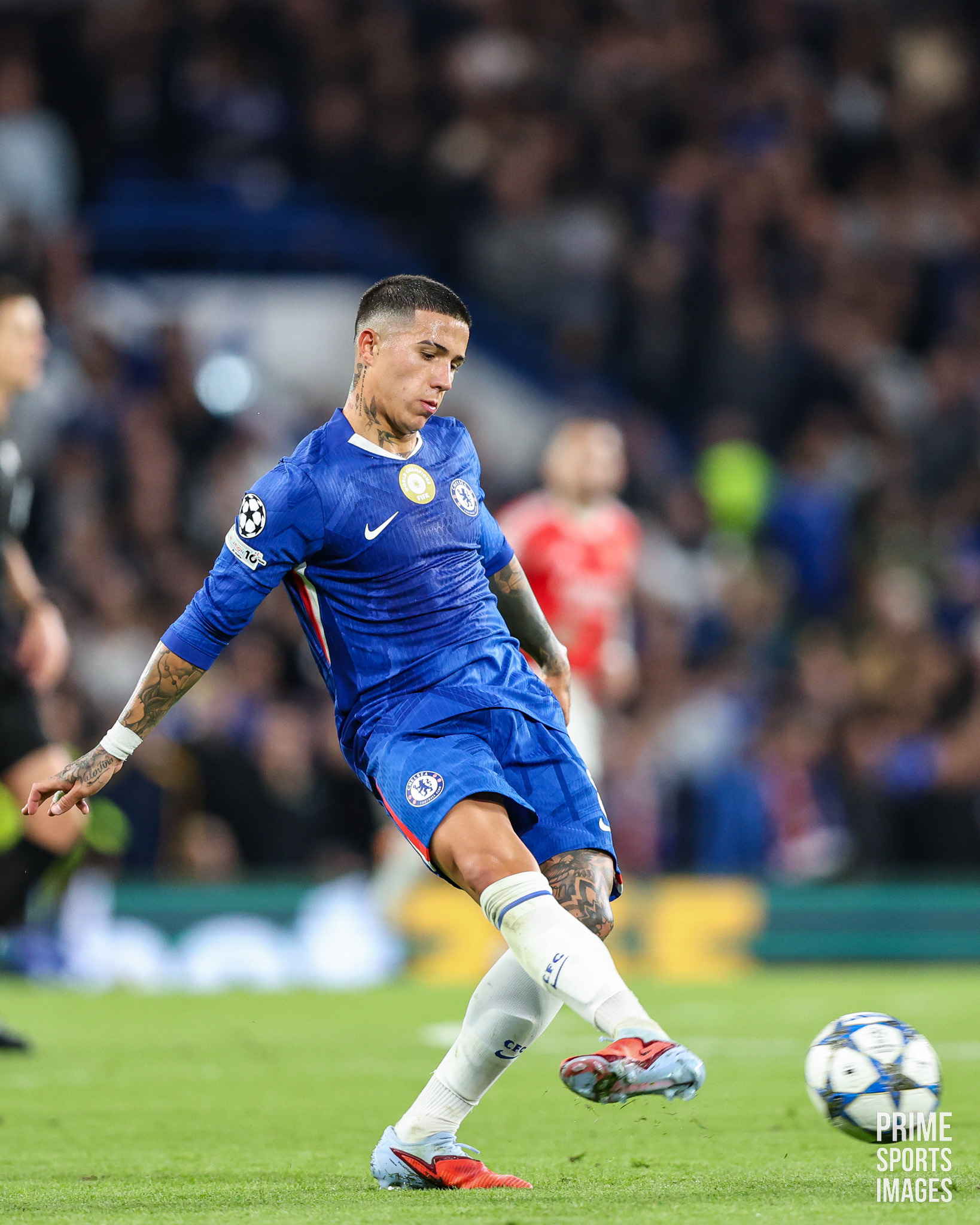 O JOGO CHEGOU A ESTAR INTERROMPIDO POR UNS MINUTOS, OS ADEPTOS VISITANTES ARREMESSARAM OBJETOS A ENZO FERNANDEZ ( EX-JOGADOR ENCARNADO ).