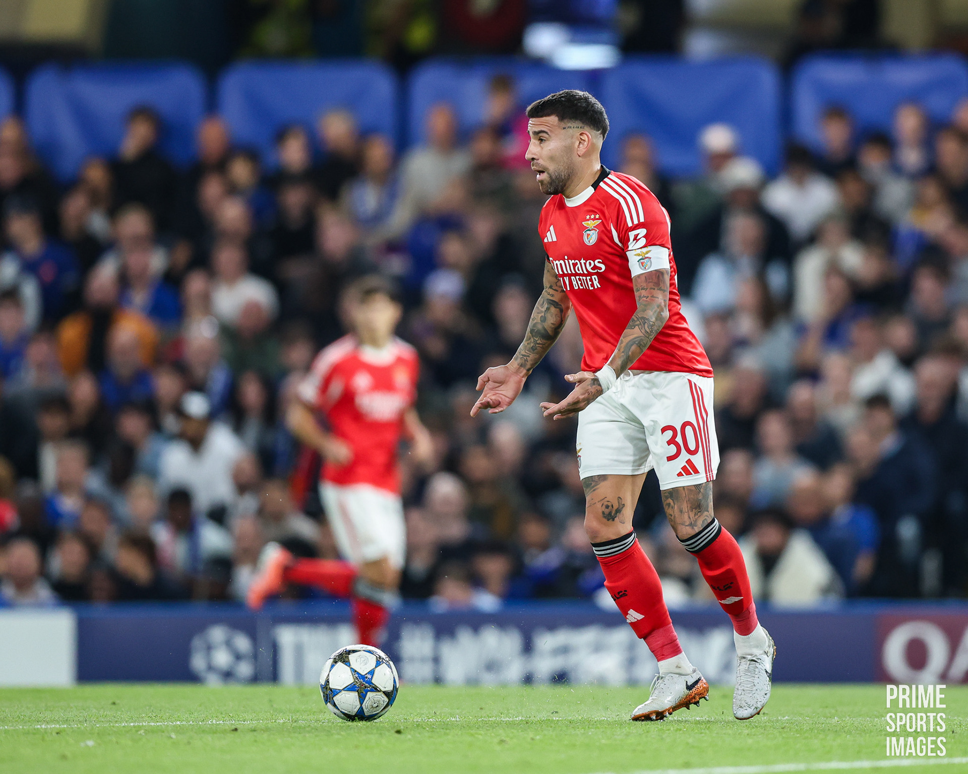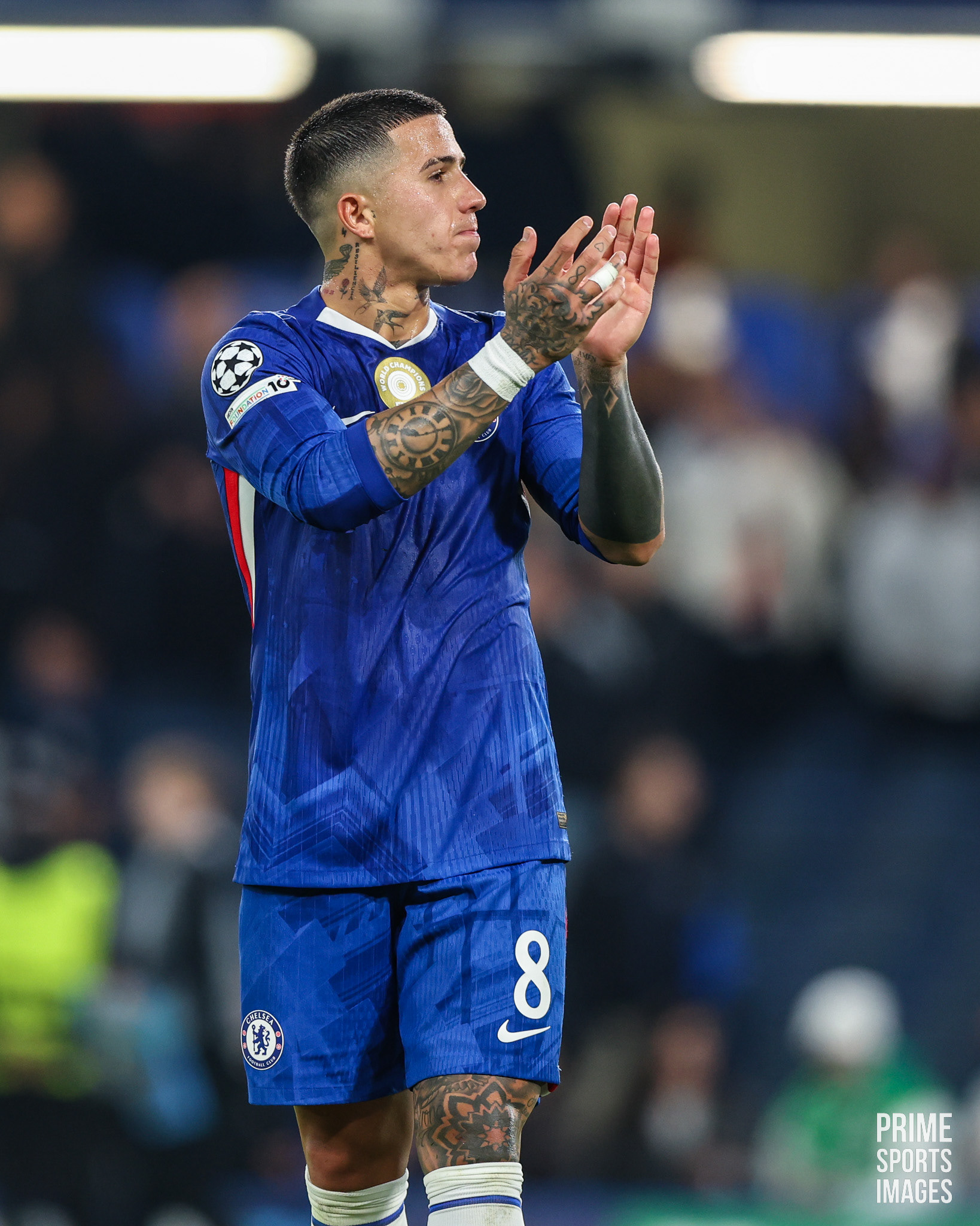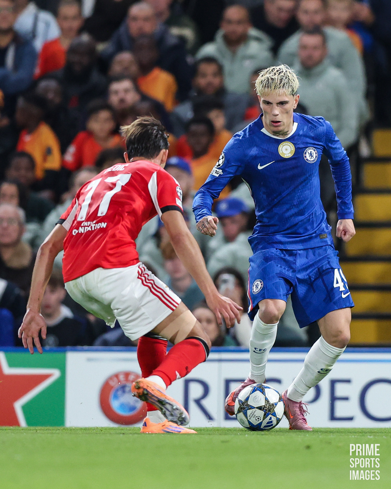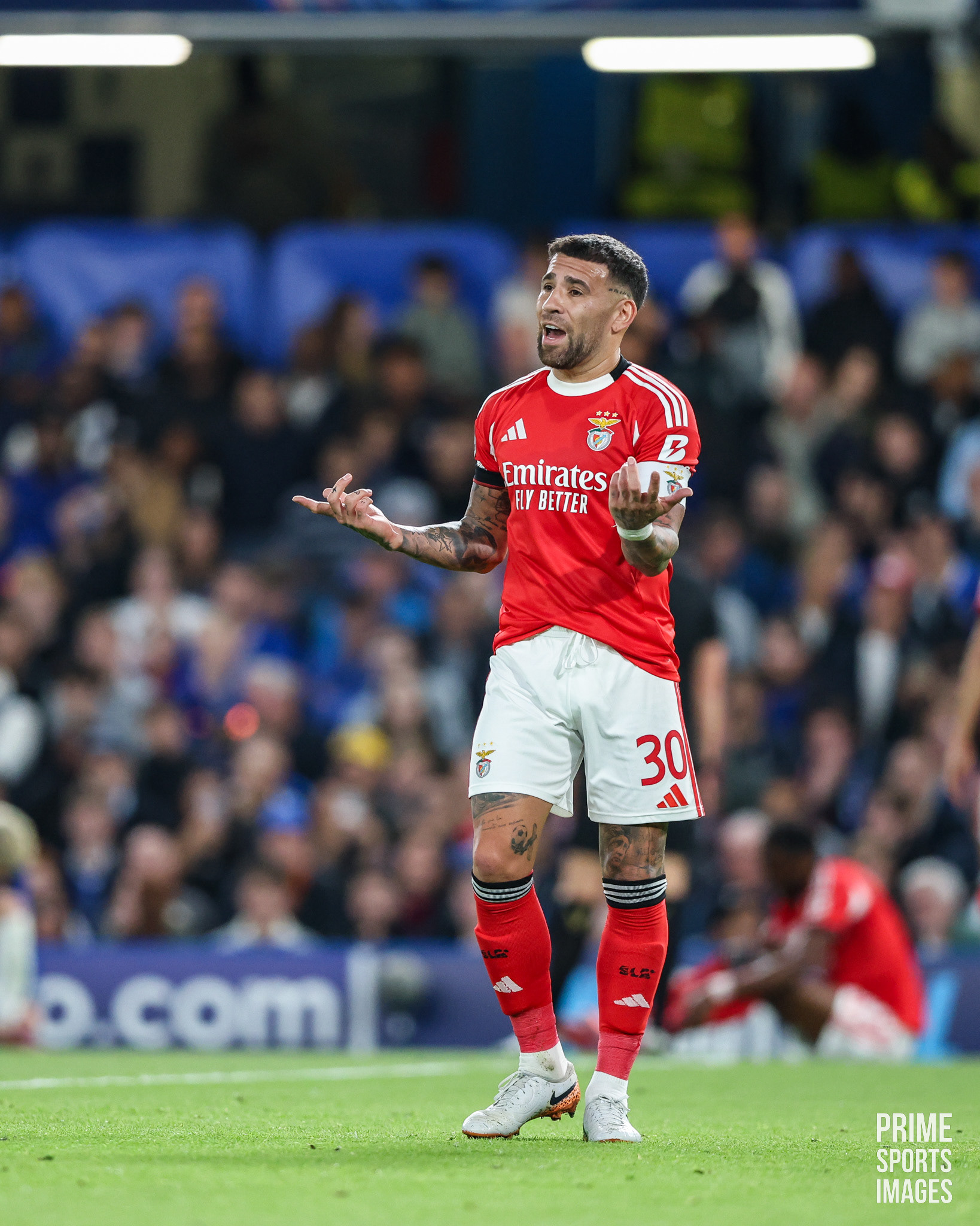 O JOGO CHEGOU A ESTAR INTERROMPIDO POR UNS MINUTOS, OS ADEPTOS VISITANTES ARREMESSARAM OBJETOS A ENZO FERNANDEZ ( EX-JOGADOR ENCARNADO ).